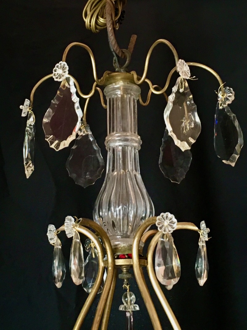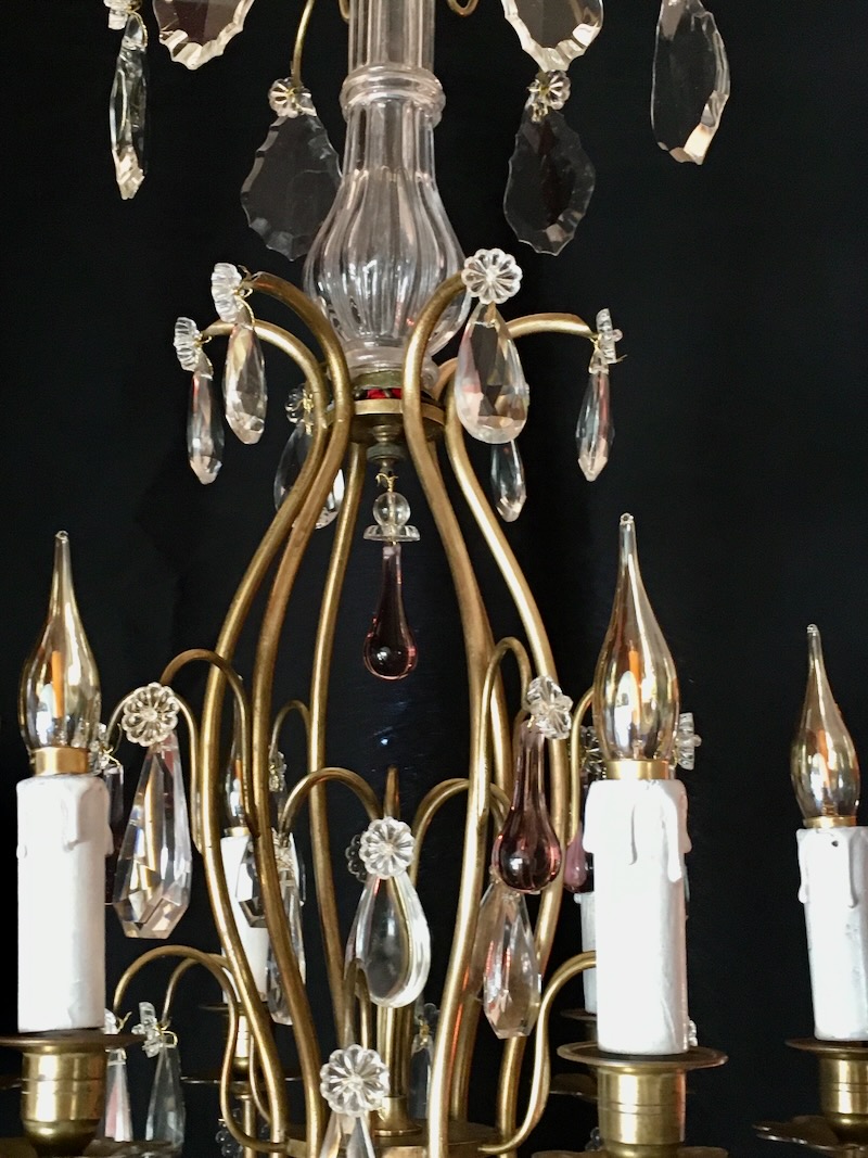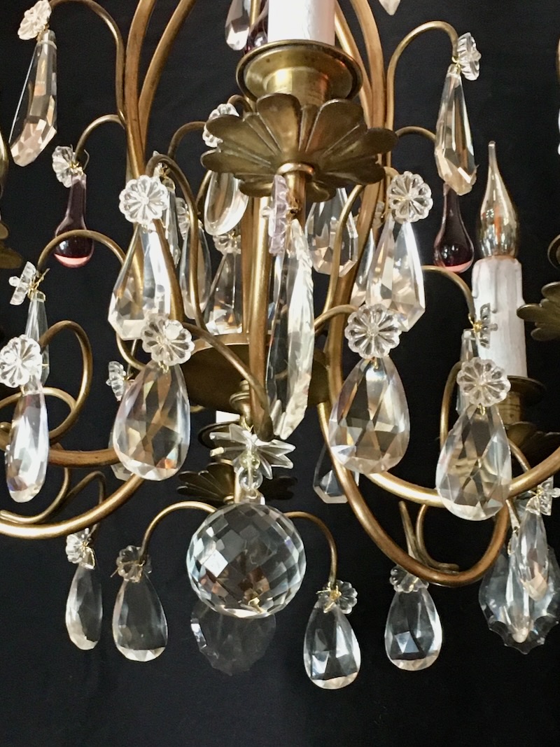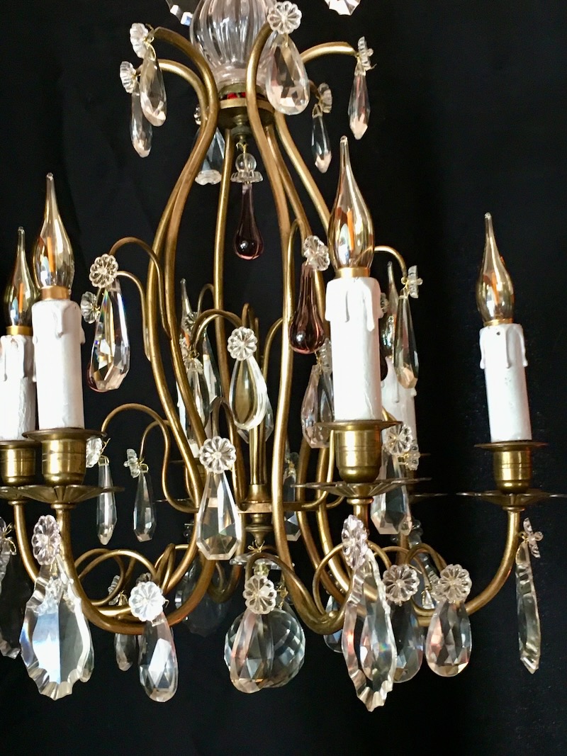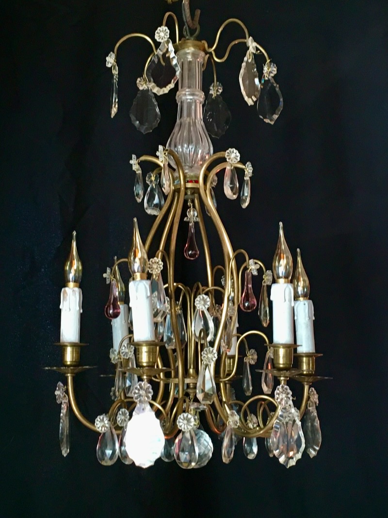 SIX ARMS CHANDELIER WITH DROPLETS AND COLOURED DROPS