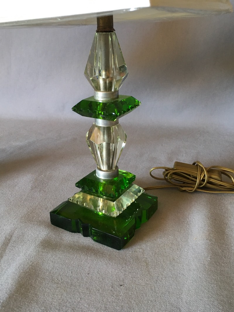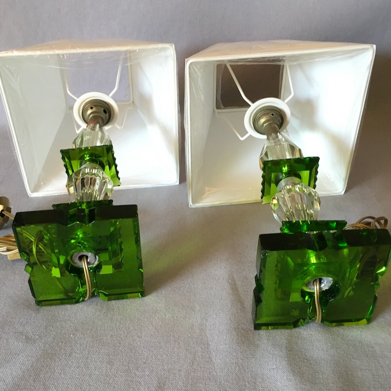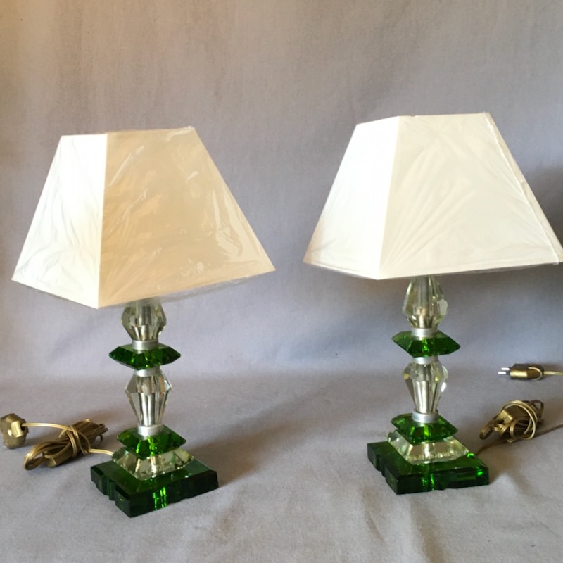 PAIR OF GLASS BEDSIDE LAMPS