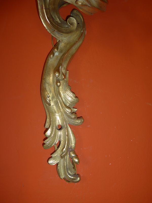 Pair of Louis X Rocaille style wall lights, once gas lamps.